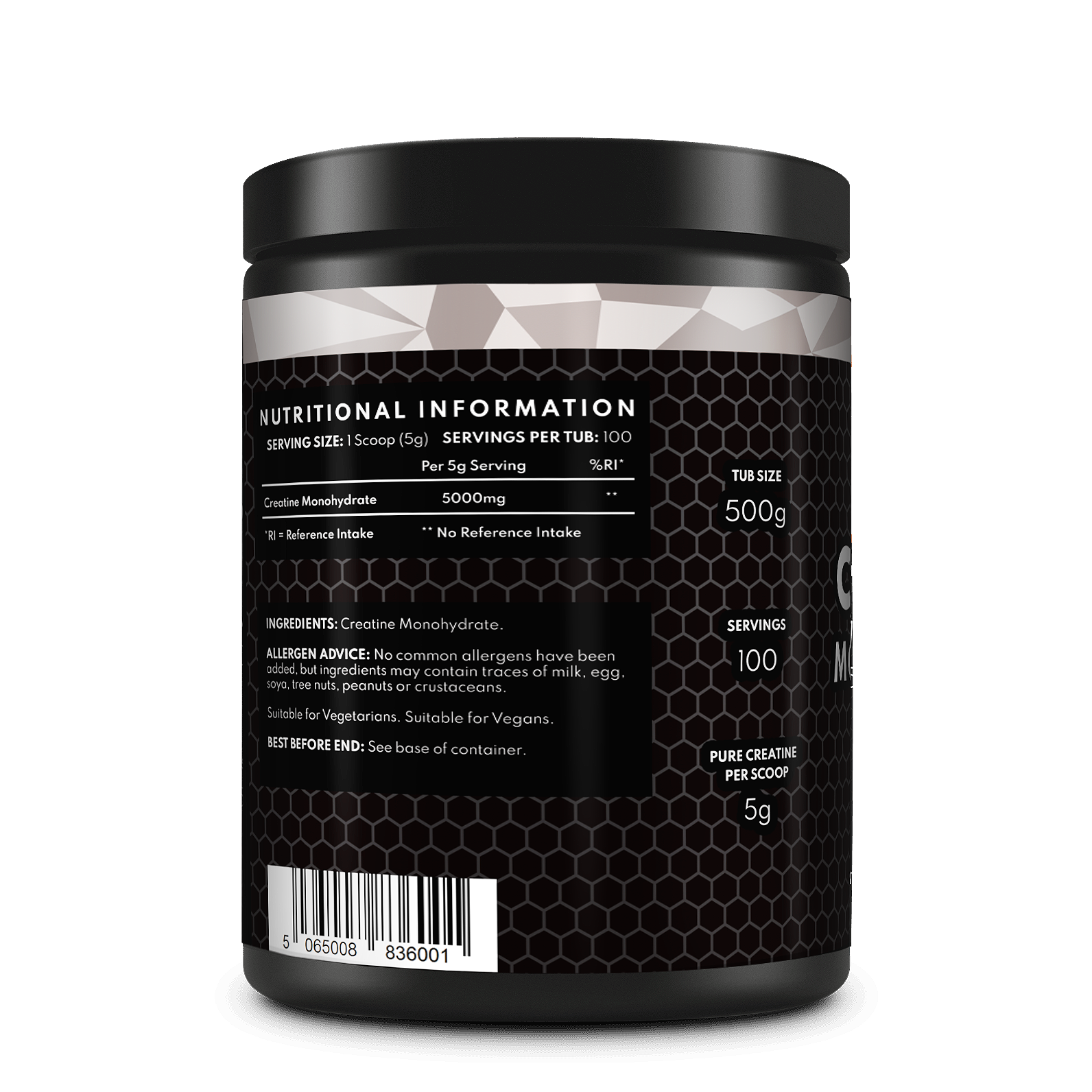 Creatine increases muscle availability, as it increases the endurance of the cells in which energy is stored. This increases the level of muscular energy, promoting enhanced physical performance. This product creates an improved environment for muscle growth because it elevates levels of protein synthesis. It is 100% micronised, HPLC tested and analysed for purity. Furthermore, it is dicyandiamide free (DCD).