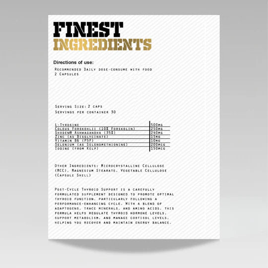 L-Tyrosine (500mg) – Amino acid essential for thyroid hormone production and mental focus.
