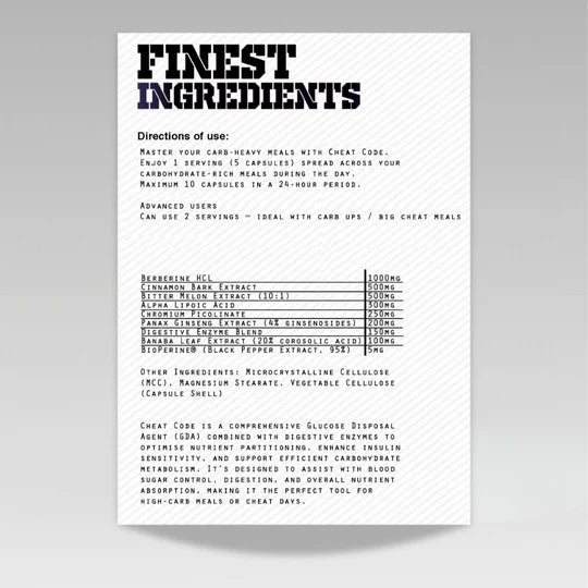 Master your carb-heavy meals with Cheat Code, the advanced Glucose Disposal Agent (GDA) engineered to help your body use carbohydrates more efficiently.