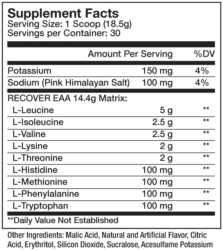 - High dose of BCAA’s and High dose of the most important EAA’s for recovery, immune function, central nervous system support and lean muscle tissue