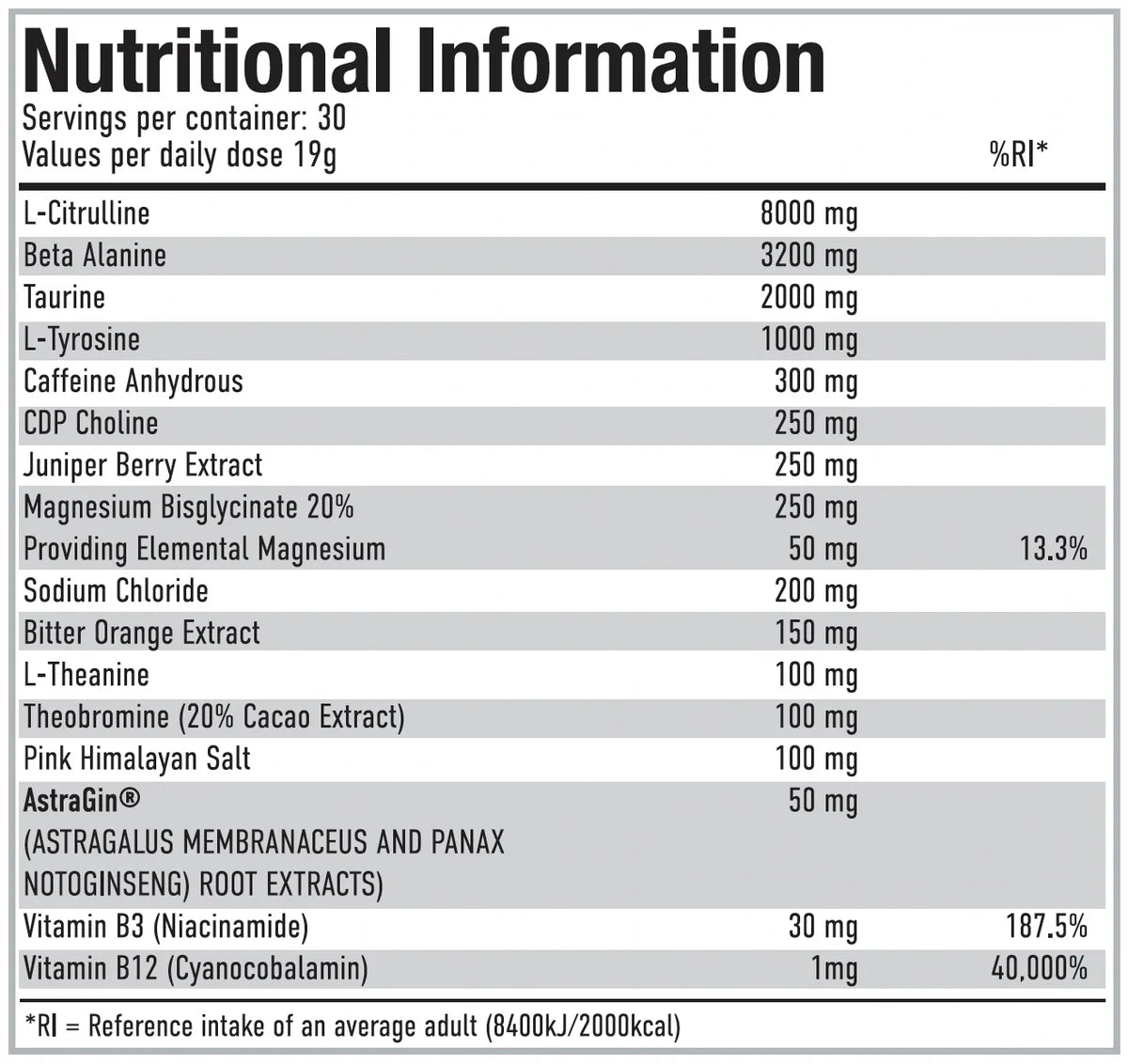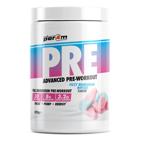 Per4m Pre is the ultimate pre-workout solution for optimal gym performance. It is packed with hand-picked ingredients to promote energy and mental focus, with 2000mg Taurine for added hydration.