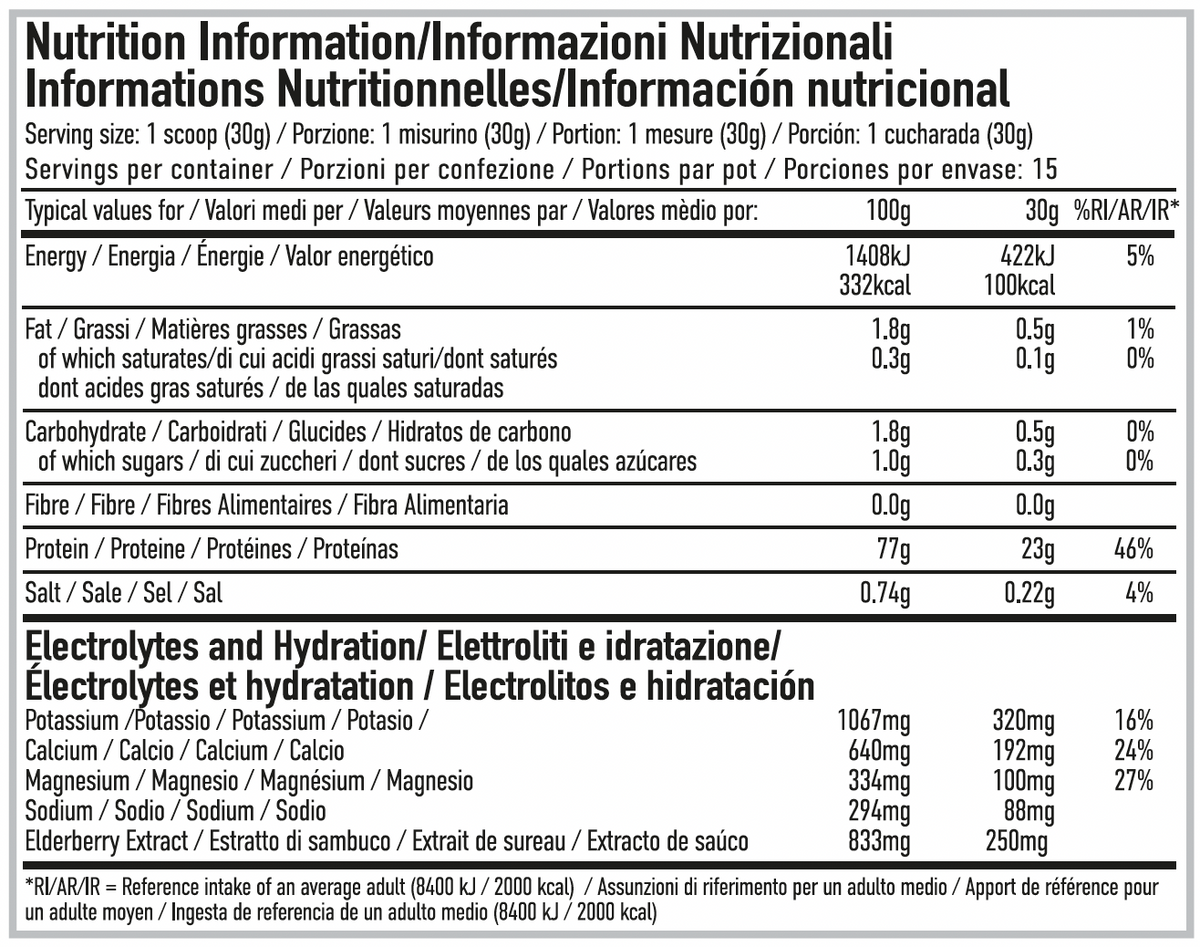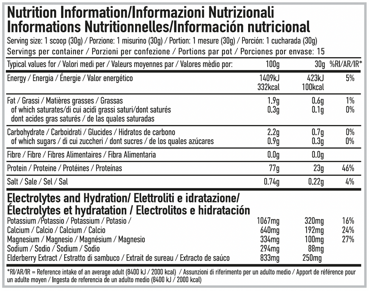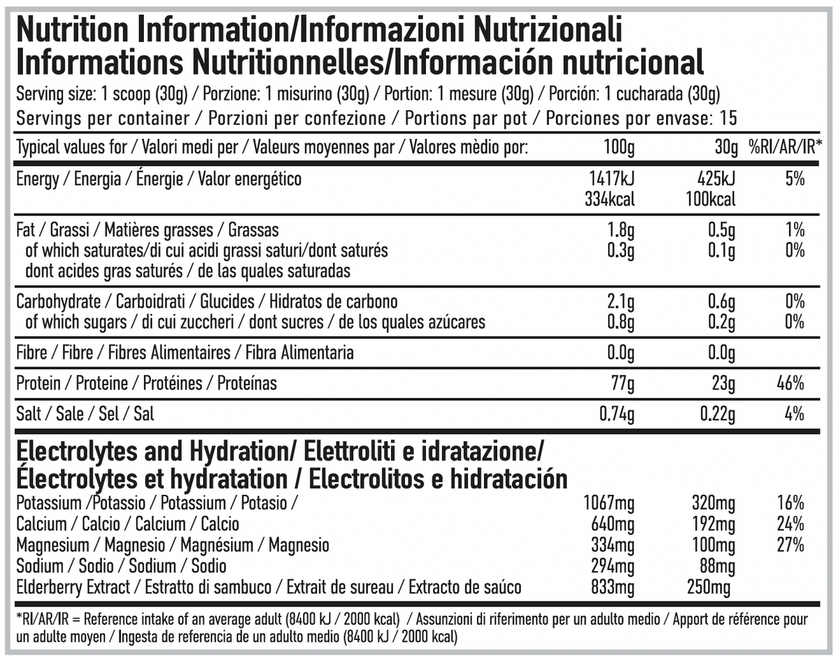 Each 30g serving delivers 23g of premium whey isolate protein with a full amino acid profile, plus added magnesium, potassium, calcium and sodium to aid electrolyte balance and muscle function. With zero heavy aftertaste, this clear, fruit-inspired shake is ideal when you want results without compromise.