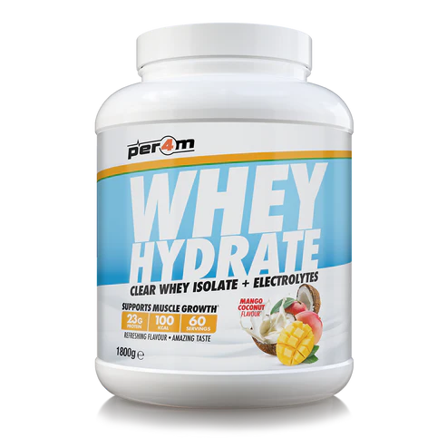 Fast-absorbing and refreshingly light, PER4M Whey Hydrate is a clear whey isolate drink with electrolytes for hydration, designed for athletes who want high-protein recovery without the milky texture. Enriched with essential electrolytes and elderberry extract, it supports hydration, energy metabolism, and muscle maintenance — perfect for training, post-workout, or daily use.