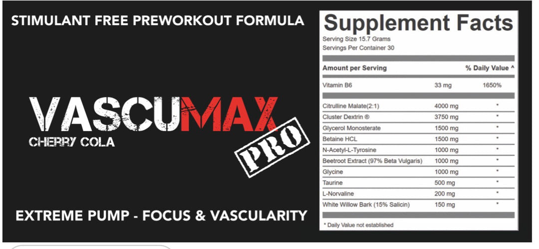 Strom Sports Nutrition VascuMax Pro is a non proprietary pump based pre workout product.