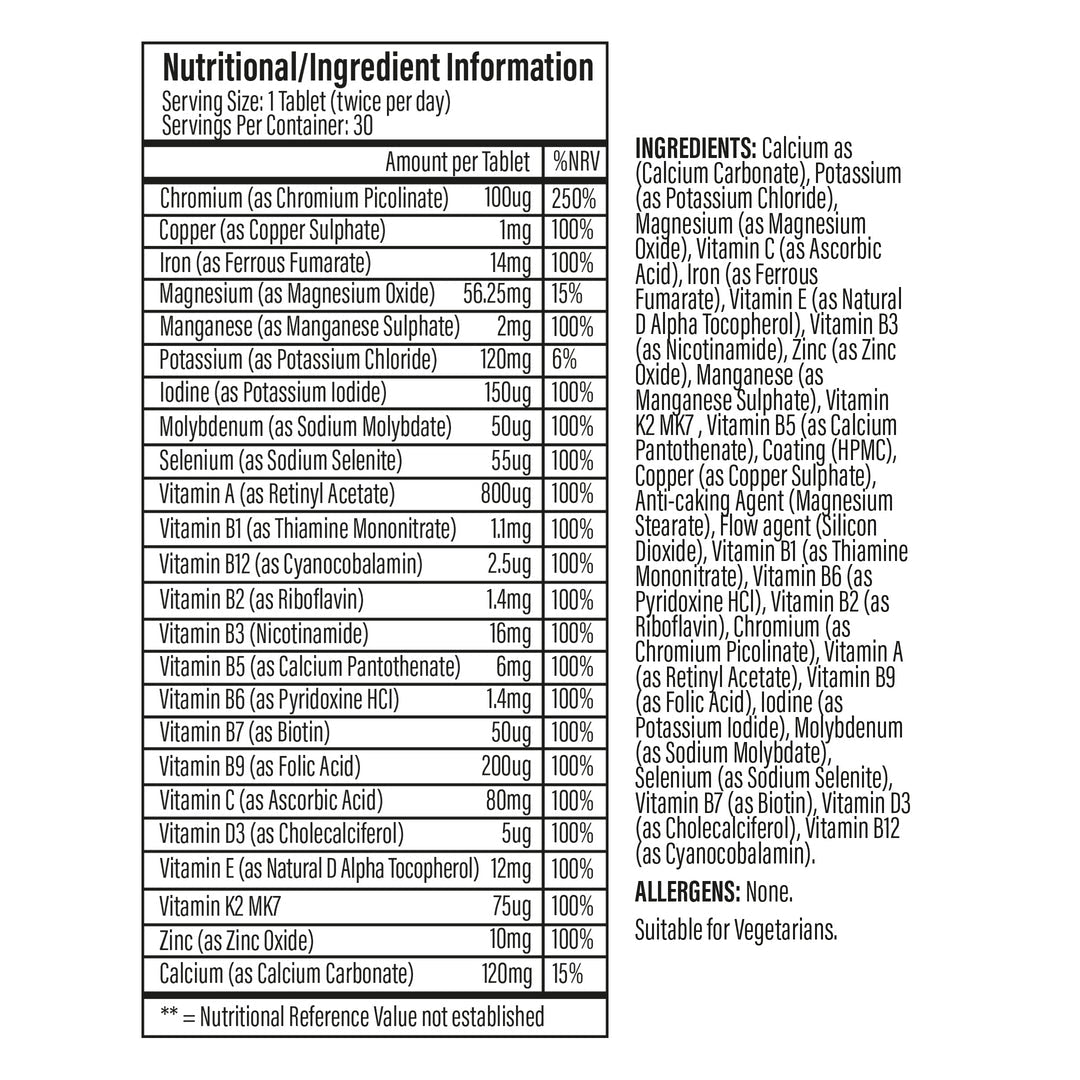 Each multivitamin and mineral addition has been carefully considered and used at an optimum dose to cover all micro-nutrient needs and shortfalls in the diet, helping to also facilitate and recover from hard training.