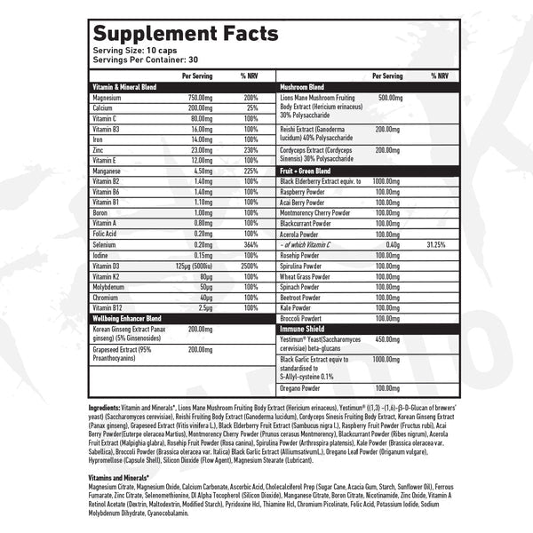 The ultimate all in one health support providing through the roof dosages and ingredients that compliment each other to give you the most complete Health and wellness product on the market. We haven't seen another product that compares in terms of what you're getting for your money, and when we say it's value for money, don't just take our word.